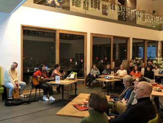 Am Mittwoch, 17. Dezember 2025 fand im WILàvie ein musikalisches Angebot, das sogenannte „Rudelsingen“, statt. Die drei Musiker/-innen Michelle Becker, Susanne Baitinger und René Bracht unterstützten den Gesang der zahlreichen Gäste mit Percussions und Gitarren. Nicht nur Weihnachtslieder wurden angestimmt, sondern auch Klassiker quer durch die Musikwelt. Fast 70 Personen aller Altersklassen folgten der Einladung und erlebten einen schönen Abend bei Gebäck und Punsch. Alle erfreuten sich an Musik und Begegnungen in der Vorweihnachtszeit und kommen im nächsten Jahr gerne wieder zum Singen ins WILàvie.