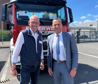 Bürgermeister Joachim Rodenkirch besuchte auf Einladung von dem neuen Standortleiter Jörg Follmann (l.) das MAN Truck Modification Center in Wittlich (Fotos: Privat).