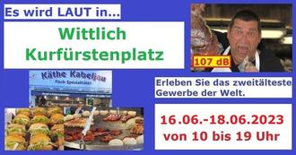 Von Freitag, 16. Juni bis Sonntag, 18. Juni 2023 jeweils von 10 bis 19 Uhr Treff der Marktschreier-Giganten - Der amtierende deutsche Meister und das lauteste Lebewesen der Welt Wurst-Achim (gemessen bei Galileo Tier vs. Mensch) trifft auf das Original vom Hamburger Fischmarkt Aal-Hinnerk auf dem Kurfürstenplatz in Wittlich!!!