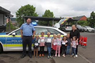 Einige Kinder der Altersgruppe „Mittelfeld“ besuchten am 16. Mai 2024 im Rahmen eines Projekts mit ihren Erzieherinnen die Polizei in Wittlich.