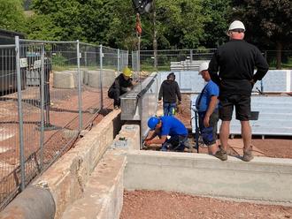 Teilweise wurden die Edelstahlwände bereits montiert und ausgerichtet.