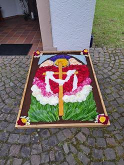 Zu diesem Anlass wurden die Bilder des Dorfer Fronleichnam-Altars mit frischen Blütenblättern erneuert und ausgestellt.