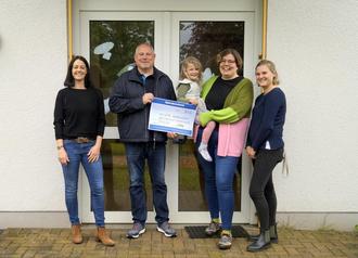Ortsvorsteher Mario Wellenberg brachte den Scheck persönlich vorbei und konnte sich direkt einen Eindruck verschaffen, was mit den Spendengeldern geschieht. Die Leiterin der Kindertagesstätte (Kita) Bombogen Wera Wahl zeigte die Veränderungen im Außengelände der Einrichtung, für die im Rahmen der weiteren Umgestaltung Mobiliar und Gerätschaften für die Kinder angeschafft werden soll. Die beiden Vorsitzenden des Fördervereines KiTa Bombogen e.V., Magdalena Zelder und Vanessa Zelter freuen sich die Kita im pädagogischen Bereich dort unterstützen zu können, wo zusätzliche Mittel, außerhalb des Budgets benötigt werden.