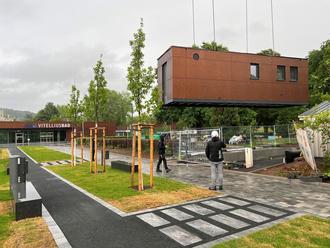 Am Mittwoch, 28. Mai 2025 wurde das neue Kioskgebäude für den Minigolfplatz als komplett vorgefertigtes Holzmodul eingehoben.