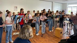 Ich als Leiterin der Bläserklasse bin sehr stolz auf die lustige Truppe, die immer mit viel Herzblut dabei ist und schon so Einiges auf ihren Instrumenten zeigen kann.