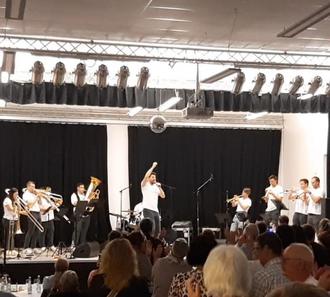 Am Pfingstsamstag wurde das Jugend- und Bürgerhaus Wengerohr wieder zum Tollhaus der Blasmusik. „Altmetall“ heizte die Stimmung mit ihrer Musik aus traditionellen und populären Arrangements schon mächtig auf. Mit viel Applaus und nicht ohne Zugabe machten die sieben Urgesteine des Musikvereins Bombogen dann die Bühne frei für den Topact des Abends, die Brassband „BRASSers“. Was dann folgte ließ die Zuhörerinnen und Zuhörer zunächst einmal nur staunen. Mit atemberaubenden Tempi sorgten die BRASSers vom ersten Takt an für ausgelassene Stimmung im Saal. Moderne Arrangements, zugeschnitten auf neun Blasmusiker und eine Musikerin, ließen keinen Fuß im Saal stillstehen. Auch die traditionellen Stücke wie Polka und Marsch sowie eigene Kompositionen wurden von den BRASSers hochprofessionell vorgetragen. Mit viel Spielwitz und Freude zeigten die Musiker, dass Blasmusik nicht nur von gestern ist. Im Gegenteil: Jung und Alt tanzten und sangen ausgelassen bei dem mehr als dreistündigen Konzert mit. Es zeigte sich, dass viele Musikerinnen und Musiker zu Gast waren und die Musik der BRASSers sozusagen in den höchsten Tönen lobten. Auch wenn die Veranstaltung nicht ausverkauft war, so war es ein unvergesslicher Abend, mit ausgelassener Stimmung und viel positiver Resonanz für den Veranstalter, den Verein Jugend- und Bürgerhaus Wengerohr e.V.
