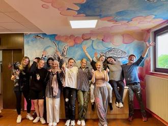 Für die Grundschule Wittlich-Wengerohr gestalteten Schülerinnen des Kunstleistungskurses BK 12 unter der Leitung von Martin Schambach vom Cusanus-Gymnasium Wittlich ein großformatiges Wandgemälde, das mehrere Quadratmeter einer Wand und Teile einer Decke umfasst.