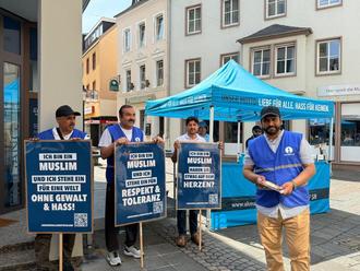 Am vergangenen Samstag standen Muslime von der Ahmadiyya Muslim Jamaat erneut in der Innenstadt von Wittlich für den Dialog bereit. Mit der Dialogaktion möchte die islamische Gemeinde mit den Bürgerinnen und Bürger ins Gespräch kommen.