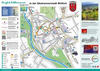 Der neu überarbeitete, übersichtliche und informative Stadtplan der Wittlicher Innenstadt ist fertig. Eine Karte auf der Vorderseite und eine kurze Beschreibung der Sehenswürdigkeiten und die Säubrennersage auf der Rückseite gestalten den aktualisierten Plan.