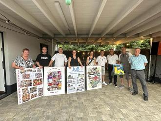 Die geplante Teamchallenge, mit der die Kirmes am Samstag starten sollte, musste leider auf Grund von Teilnehmermangel abgesagt werden. So startete die Kirmes mit der offiziellen Eröffnung am Samstag um 20 Uhr. Ortsvorsteher Matthias Linden begrüßte neben den geladenen Gästen die Dorfbewohner und alle Besucherinnen und Besucher zur Kirmes und zum Jubiläum 10 Jahre JuB. Den Worten schloss sich Bürgermeister Joachim Rodenkirch an und gratulierte zur gelebten Dorfgemeinschaft, die sich durch ehrenamtliches Engagement gemeinsam von Jung und Alt zeigt. Mit der Fertigstellung des JuB ist ein Zentrum für alle Bürgerinnen und Bürger entstanden, wo Raum für die vielfältigen Aktivitäten der Vereine, private und betriebliche Feste zur Verfügung steht. Des Weiteren ist ein offener Jugendraum entstanden, der auch als Treffpunkt für Generationen genutzt wird. Olaf Röder als 1. Vorsitzender des Trägervereins erklärte, dass sich genau dies auch im Logo des Jugend- und Bürgerhauses wiederfindet: Das Haus ist selbsterklärend, die zwei blauen unterschiedlich großen Männchen symbolisieren die Vielfalt der unterschiedlichen Menschen, für die das JuB da ist der offene Kreis, der diese beiden Zeichen umfasst steht für die Offenheit und das Willkommen des Vereins und des Hauses für Jedermann. Die 3 Farben sind auf das Wappen von Wengerohr zurückzuführen, um auch hier die Verbundenheit mit dem Ort darzustellen. Und da bei einer Geburtstagsfeier Geschenke nicht fehlen dürfen, überreichten Musikverein, Karnevalsverein, Theatergruppe und der Verein JuB gestaltete Bilderrahmen, die die Wände des Hauses nun schmücken. Das weitere Programm teilte sich an diesem Abend die Band „Déjà vue“ mit der Deutschen Nationalmannschaft, deren Einzug ins Achtelfinale gefeiert werden konnte. Ein bisschen Wehmut brachte nur die ergiebige Regenschauer.