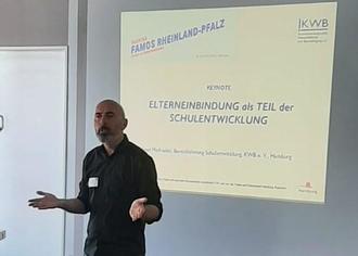 Ein Höhepunkt der Veranstaltung war der Fachvortrag von Dr. phil. Alexei Medvedev, Bereichsleiter Schulentwicklung bei der KWB Koordinierungsstelle Weiterbildung und Beschäftigung e. V. in Hamburg. In seinem Beitrag zeigte Dr. Medvedev auf, welche grundlegenden Voraussetzungen in Schulen erfüllt sein müssen, um Eltern erfolgreich in schulische Prozesse einzubinden und somit Bildungsgerechtigkeit zu fördern. Seine Arbeitsschwerpunkte liegen unter anderem in der Elternkooperation als Bestandteil von Schulentwicklung sowie in der Gemeinwesenarbeit und Bildung im Kontext von Migration.