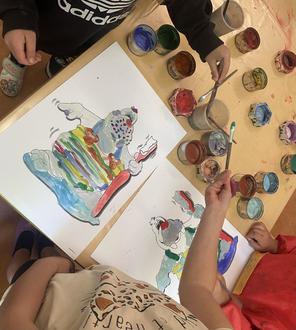 Die Vorschulkinder der Kita St. Markus-Karrstraße haben vier wunderschöne, bunte Kostüme gestaltet.