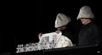 Thomas Hänsel und Rusen Kartaloglu zogen die Kinder mit ihrer Spielfreude von Beginn an in den Bann. Beim Erzählen entstanden unter ihren Händen Figuren aus Zeitungspapier und begannen zu agieren. Vielstimmig und vielsprachig verwandelten sie sich in Ali Baba und seine Frau Fatima, den gierigen Bruder Kasim, die Wächter der Schatzhöhle und den brutalen Räuberhauptmann. Eine mitreißende Vorstellung: es wurde mitgetanzt, geklatscht, die agierenden Puppen gewarnt und angefeuert - bis zum Schluss die Geschichte mit dem Tod der bösen Räuber und dem friedlichen Weiterleben Ali Babas, Fatimas und Gülays ihr gutes Ende nahm.