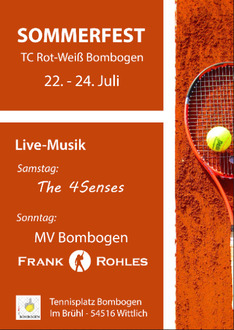 Der Tennisclub Rot-Weiß Bombogen 1982 e.V. feiert in diesem Jahr sein 40-jähriges Vereinsjubiläum. Aus diesem Anlass laden wir Sie zum traditionellen Sommerfest vom 22. – 24. Juli 2022 auf die Clubanlage nach Bombogen ein!