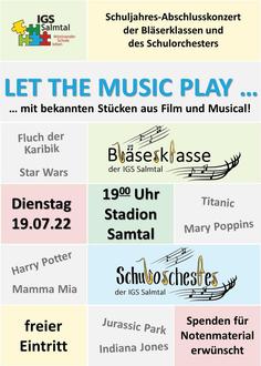 Das Schuljahres-Abschlusskonzert der Bläserklassen und des Schulorchesters der IGS Salmtal findet am 19.07.2022 um 19 Uhr im Salmtalstadion statt.