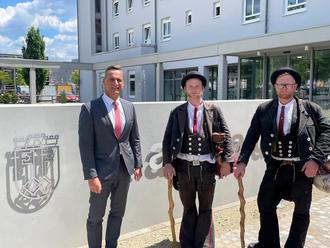 Die Wandergesellen Philipp Jeschke und Andreas Hermann Lipp machten vergangene Woche auf ihrer traditionsreichen Wanderschaft im Wittlicher Rathaus Halt. Für die Wanderschaft, die mindestens drei Jahre und einen Tag gehen muss, gibt es zahlreiche Regeln. So dürfen die Gesellen weder ihr Handy oder das Internet benutzen, noch dürfen sie selbst zu Reisezwecken mit dem Auto fahren. Bürgermeister Rodenkirch begrüßte die Beiden vor dem Rathaus und gab ihnen als Proviant eine Flasche Wein aus Wittlich mit auf den Weg. Der weitere Weg soll nun nach Freiburg im Breisgau führen.