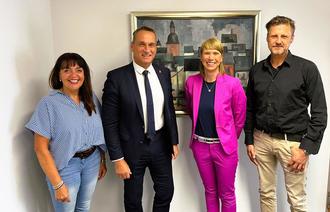 Bürgermeister Rodenkirch gratulierte Diana Gerhards (Mitte) zu ihrem langjährigen Werdegang im öffentlichen Dienst. Der Gratulation schloss sich der Fachbereichsleiter III Rainer Wener (rechts) sowie die Personalratsvorsitzende Christiane Schmitz-Hayer (links) gerne an (Foto: Sebastian Klein).