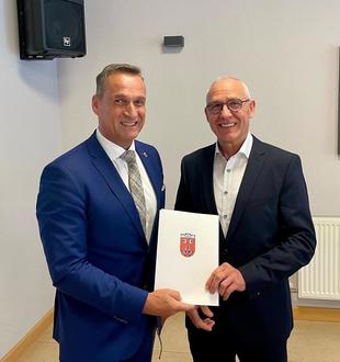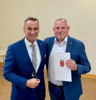 Bürgermeister Joachim Rodenkirch ernennt Udo Reihsner zum Ortsvorsteher von Neuerburg (Foto: Rainer Stöckicht).