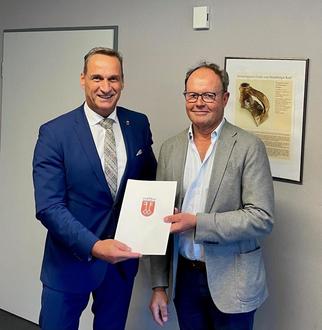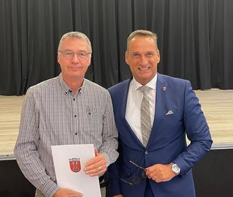 Bürgermeister Joachim Rodenkirch ernennt Gerhard Hoffmann zum Ortsvorsteher von Dorf (Foto: Rainer Stöckicht).