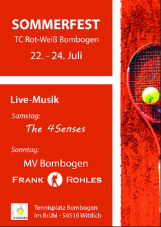 Der Tennisclub Rot-Weiß Bombogen 1982 e.V. feiert in diesem Jahr sein 40-jähriges Vereinsjubiläum. Aus diesem Anlass lädt der Tennisclub zum traditionellen Sommerfest vom 22. - 24. Juli 2022 auf die Clubanlage nach Bombogen ein!