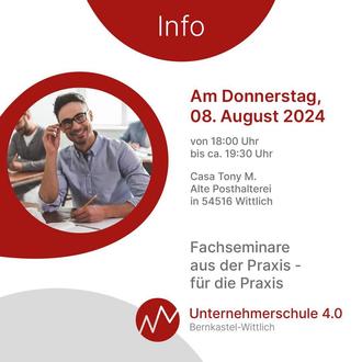 Im September 2024 startet die inzwischen 5. Runde der Unternehmerschule 4.0 Bernkastel-Wittlich. Nach dem bekannten Motto „Aus der Praxis für die Praxis“ bietet ein modernisierter Lehrplan den TeilnehmerInnen und deren Unternehmen noch mehr Nutzen.