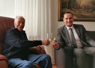 Bürgermeister Joachim Rodenkirch gratuliert dem Ehrenbürger der Stadt Wittlich Hans-Günther Heinz zum 90. Geburtstag.