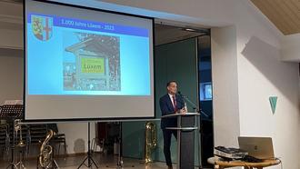 Nach einem weiteren Musikvortrag der Bläser gab Chronist Erich Gerten einen kleinen Einblick in die Lüxemer Chronik, die seit Wochen durch ihn und eine Arbeitsgruppe erstellt wird. Mittlerweile gibt es so viel Material, dass die fertige Chronik über 300 DIN-A4-Seiten umfassen wird. Es wird viel Historisches geben, aber auch viele Anekdoten und Bilder aus den letzten Jahrzehnten und natürlich auch die Geschichte der Lüxemer Vereine bis in die Gegenwart. Er erzählte z.B., dass der Lüxemer Sterenbach einst Grenze zwischen Kurtrier und der Grafschaft Manderscheid war, aber die Lüxemer trotzdem schon damals zusammengehalten haben und auch damals nur einen Ortsvorsteher (Schultheiß) hatten. Man darf also auf viele weitere solche Geschichten gespannt sein und sich auf dieses tolle Werk freuen.