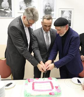 Im Anschluss richtete Bürgermeister Rodenkirch einige Worte an die Anwesenden. Dabei sprach er die Konflikte in der Welt und die großen Herausforderungen auch für die Kommunen an. Angesichts dessen sei er dankbar für das gute und friedliche Miteinander der verschiedenen Akteure in der Zivilgesellschaft in Wittlich. Auch der Bundestagsabgeordnete Schnieder sprach in seinem Grußwort von einer schwierigen Zeit mit vielen Herausforderungen. Er lobte dabei das Engagement der Ahmadiyya Muslim Jamaat als vorbildlich.