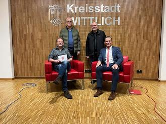 hinten stehend Heribert Geiter (l.) und Erwin Holl Vordere Reihe sitzend Hermann Haller (l.) und Bürgermeister Joachim Rodenkirch (Foto: Melanie Becker).