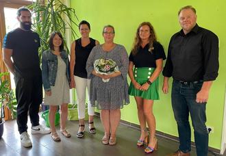Eine Ära geht zu Ende. Schweren Herzens mussten wir im Verlauf dieses Schuljahres unsere langjährige Schulsekretärin, Frau Jutta Heck, in den wohlverdienten Ruhestand verabschieden. Mit ihrer kompetenten und hilfsbereiten Arbeitsweise, war sie dem Schulleitungsteam sowie den Kolleg*innen immer eine große Stütze. Auch um die großen und kleinen Probleme der Schüler*innen kümmerte sie sich. So trug sie trug wesentlich dazu bei, dass wir uns alle an unserer Schule wohlfühlen. Daher bedankte sich die Schulgemeinschaft auch an ihrem letzten offiziellen Arbeitstag mit einigen tollen „Überraschungen“. Vielen Dank für die letzten Jahre! Wir alle werden sie sehr vermissen und wünschen ihr für den nächsten Lebensabschnitt ganz viel Glück, Gesundheit und Zufriedenheit!