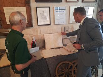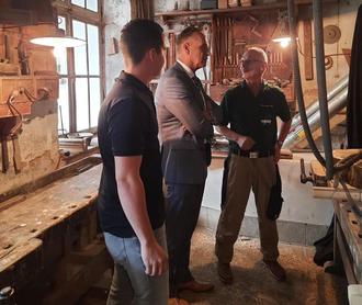 In der alten Werkstatt v.l.n.r.: Maximilian Schiffels; Bürgermeister Joachim Rodenkirch; Hans-Dietmar Hayer.