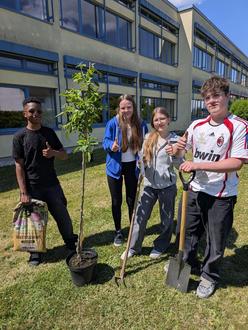 Die Demokratie AG "#ClaraBlick" pflanzt einen Apfelbaum (Fotos: D. Reis).