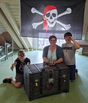 Auch in diesem Jahr sorgte die Stadt- und Kreisergänzungsbücherei Wittlich während der Sommerferien mit einem neuen, spannenden und abwechslungsreichen Escape-Game-Angebot für Begeisterung. Gruppen von 2 bis 4 Personen ab 7 Jahren sowie Familien konnten sich kostenlos anmelden. Unter Leitung des Schatzjägers Prof. Dr. Weißhut, ging es dann der hermetisch verschlossenen Truhe des Piraten Barbarossa an den Kragen. Bei dieser Mission mussten die Teams knifflige Geheimnachrichten entschlüsseln und Codes knacken, damit sich die Schatztruhe knarrend öffnete… Gefragt waren kreatives Denken, Teamwork und Kombinationsgabe – ein Riesenspaß für Groß und Klein. Die Nachfrage nach dem Escape-Game-Angebot war hoch und so waren die 24 Termine im Handumdrehen ausgebucht. Viele Interessenten mussten bereits auf die Herbstferien vertröstet werden, wenn das Dachgeschoss der Stadtbücherei sich wieder in eine Schatzinsel verwandelt.