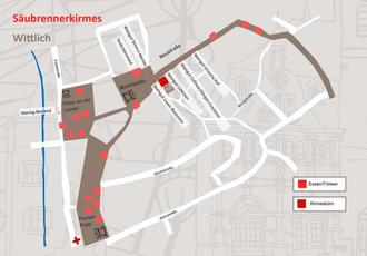 Ein Muss für jeden traditionellen Kirmesbesucher ist der, weit über die Stadtgrenzen hinaus bekannte, schmackhafte Schweinebraten. Aber auch die anderen kulinarischen Köstlichkeiten wie Bratwürste, Falafel, etc. sowie auch fleischlose Gerichte (gebratene Champignons, Crêpes, Churros, Pommes, Tornadokartoffelspieße, Flammlachs, Rosmarinkartoffeln, Asia-Gerichte und vieles mehr) sind sehr zu empfehlen. Die Getränkeauswahl an der Säubrennerkirmes beinhaltet ausgesuchte Weine aus Wittlich, der Mittelmosel (Ürzig, Maring-Noviand, Osann-Monzel, Piesport, Mülheim). Bier, Sekt, Cocktails und alkoholfreie Getränke runden das Getränkeangebot ab.