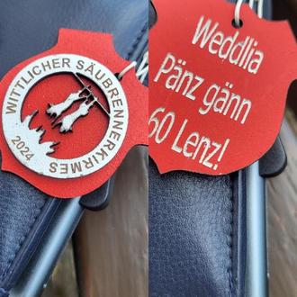 Das ORGA-Team, das immer noch mit genauso viel Elan bei der Sache ist wie vor 10 Jahren, worauf ich als Präsi auch besonders stolz bin, hat sich was Besonderes einfallen lassen. Wir haben uns eine Sonderplakette für dieses Jahr machen lassen, die jeder von den Anwesenden ausgehändigt bekam.