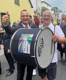 Zur Übergabe am Samstag, am Schloßberg, hatten wir uns was ganz Besonderes einfallen lassen. Wir bekamen von den SAMBA SISTERS einige Trommeln ausgeliehen. Nach nur einem Abend Probe, war unser Rhythmus perfekt.