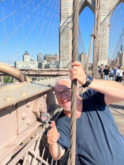 Auch am 24.05.2024 habe ich uns als 60-Jährige und die Stadt der Säubrenner in New York auf der Brooklyn Bridge verewigt.