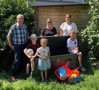 Damit möglichst viele Kinder lange Freude mit dem Spielzeug auf dem Spielplatz haben, bitten wir das Spielzeug nach der Benutzung wieder in die Kiste einzuräumen und den Deckel vor Verlassen des Spielplatzes zu zuklappen.