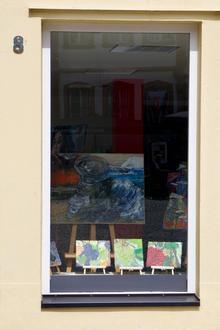 Aber nicht nur für Leerstände bieten sich damit Möglichkeiten einer abwechslungsreichen Schaufenstergestaltung. Mit Kunstwerken temporäre Highlights im Geschäftsalltag zu setzen, ist ebenfalls eine denkbare Wirkweise, wie aktuell in Feldstraße 8 zu sehen ist.