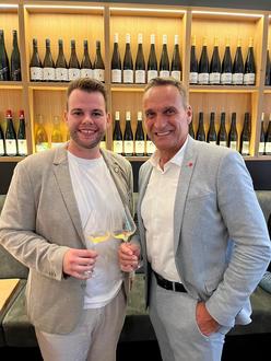 Bürgermeister Joachim Rodenkirch gratulierte Alexander Groß zur Eröffnung der Weinbar, in der Wein und Genuss im Mittelpunkt stehen.