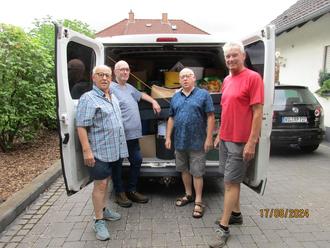 v.l.n.r.: Heiner Lehnen, Albert aus den NL, Reinhold Lehnen und Peter Simon beim Verladen der Kronkorken (Fotos: Privat).