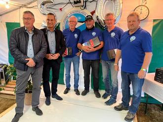 Gruppenfoto anlässlich des Vereinsjubiläums v.l.n.r.: Ortsvorsteher Matthias Linden, Bürgermeister Joachim Rodenkirch, Diethelm Reimann, Joachim Müller, Bernhard Müller und Hartmut Scheibe (Foto: Christian Leisch).