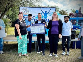 Scheckübergabe an die Wittlicher Tafel, die mit dem Kinderschutzbund jeweils 700 Euro für ihre künftige Arbeit erhalten haben (Fotos: Ahmadiyya Muslim Jamaat).