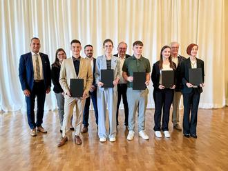 Ausgezeichnet wurden Florian Finn (Clara-Viebig Realschule plus) und Liana Michaelis (Kurfürst-Balduin Realschule plus) mit jeweils 2.250 Euro, Julian Gräf (Berufliches Gymnasium) und Jette Benz (Cusanus Gymnasium) mit jeweils 4.000 Euro.