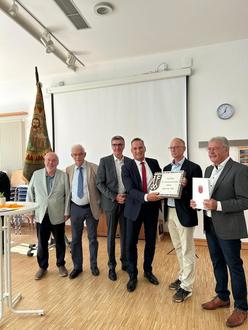 Bürgermeister Joachim Rodenkirch überreicht dem Vorstand der St. Josefsbruderschaft den Ehrenschild der Stadt Wittlich (Foto: Privat).