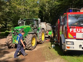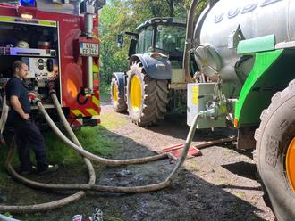 Landwirte mit Traktoren und Wasserfässern unterstützten die Löscharbeiten.