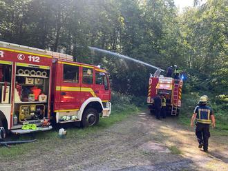 Um eine adäquate Brandbekämpfung bei einem Waldbrand zu gewährleisten ist eine ausreichende Wasserversorgung unerlässlich. Hierzu wurde die Einrichtung eines Pendelverkehrs mit Tanklöschfahrzeugen sowie der Aufbau einer Löschwasserförderstrecke mit Tragkraftspritzen und der Wasserentnahme aus offenem Gewässer erprobt. Später wurden zusätzlich Landwirte alarmiert, welche mit großen mobilen Wasserfässern den Pendelverkehr ergänzten. Die Wasserentnahmestelle für die Tanklöschfahrzeuge des Pendelverkehrs wurde im Bereich des Waldhauses an einem Hydrant eingerichtet. Hier konnten die Löschfahrzeuge immer wieder mit Löschwasser betankt werden bevor sie wieder zur gezielten Wasserabgabe in den Wald fuhren.
