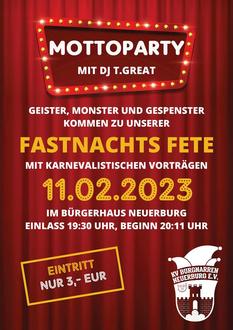 Dazu veranstalten wir eine Mottoparty mit DJ T.Great und karnevalistischen Beiträgen.