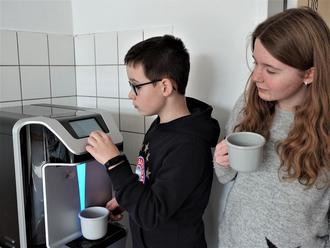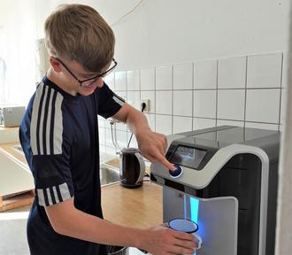 Die Schülerinnen und Schüler freuen sich über den Wasserspender am Cusanus-Gymnasium (Fotos: Dr. Michaela Schüssler-Schwab).