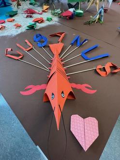 Der gebastelte Krebs aus dem Origamiprojekt steht stellvertretend für die vielen originelle Schülerergebnisse, die während der Projektwoche entstanden (Foto: Julia Sterk).